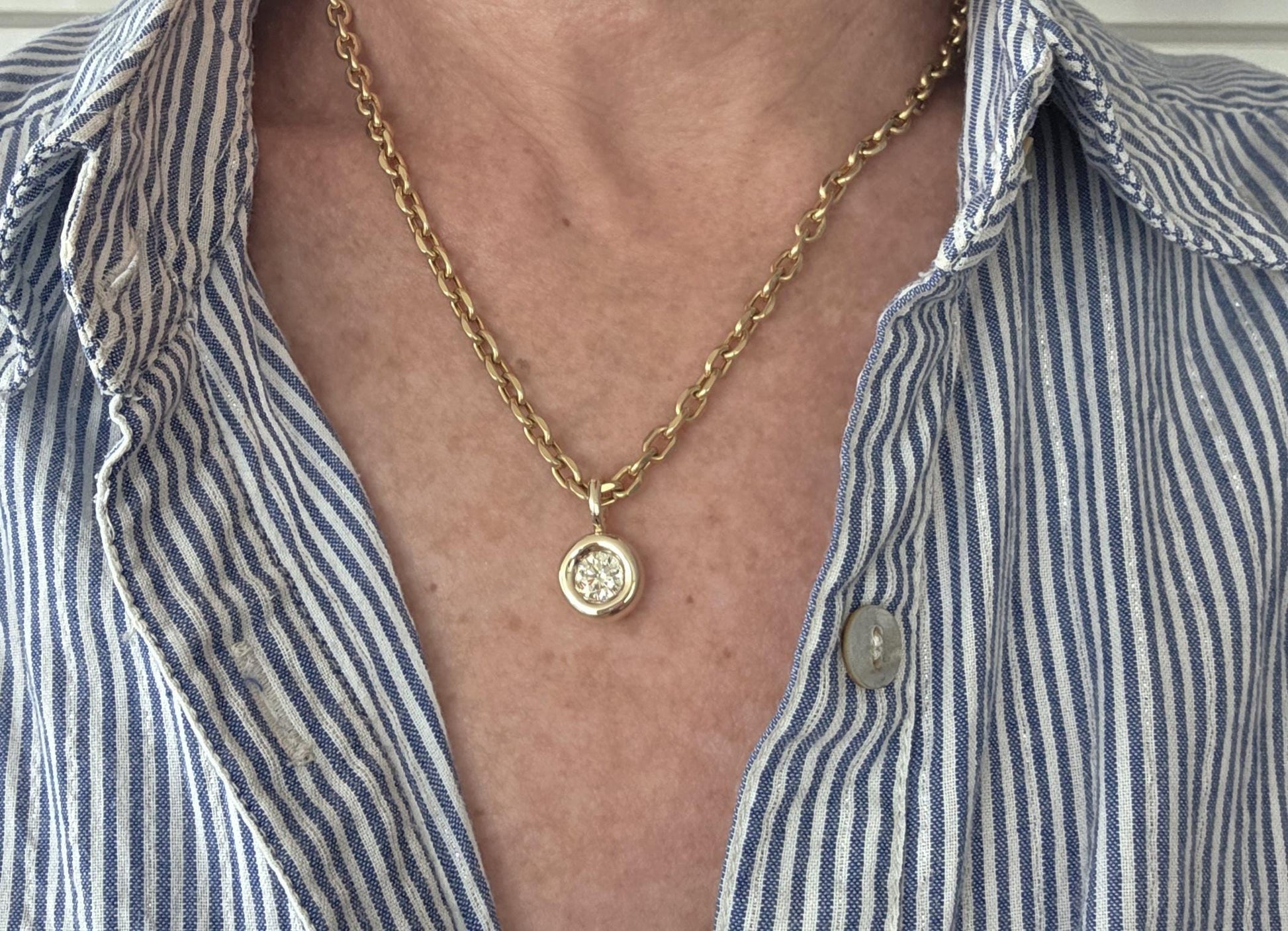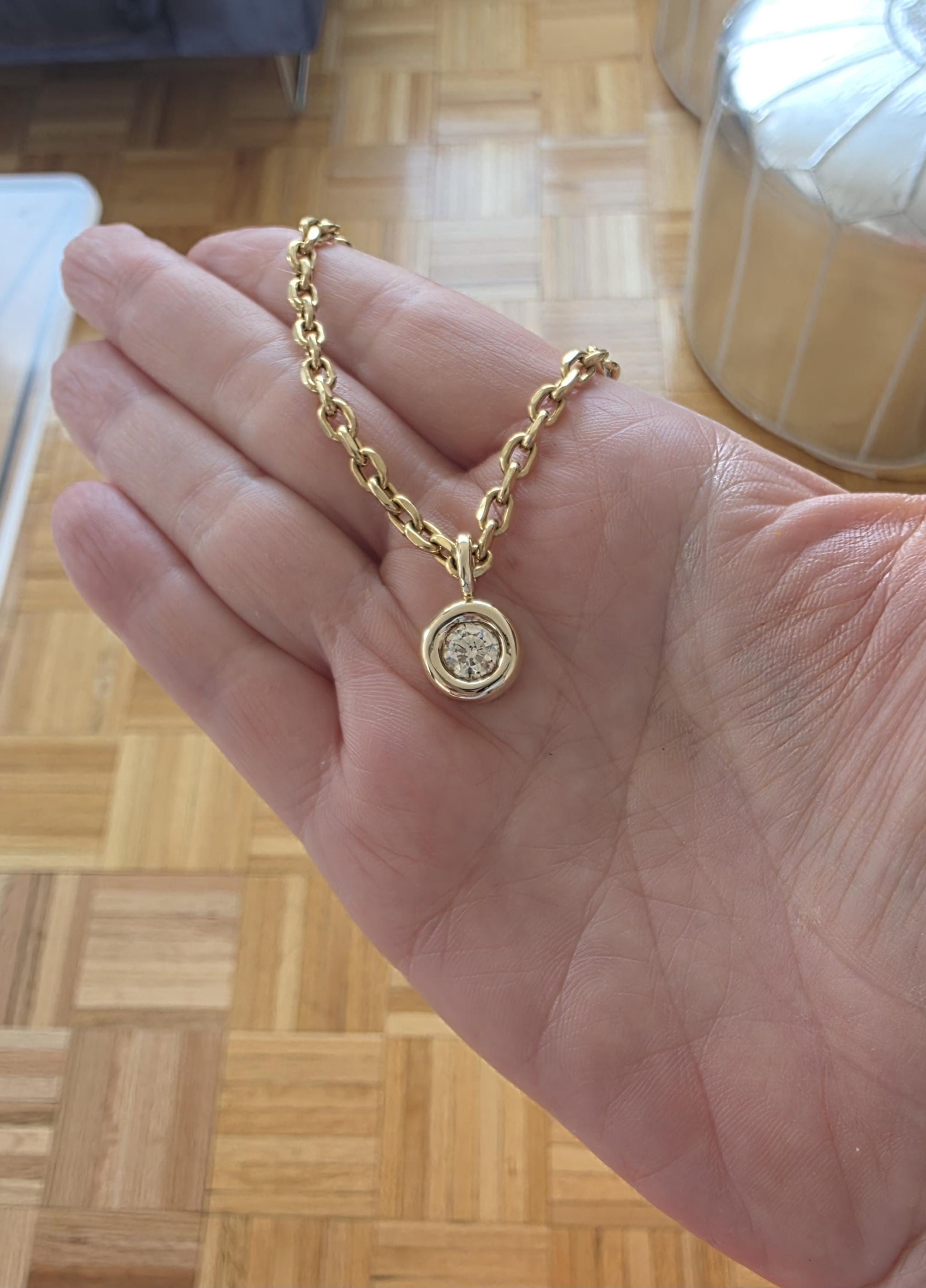 • Materials: 14K yellow gold. 1 tcw lab grown round brilliant diamond. CHAIN SOLD SEPARATELY