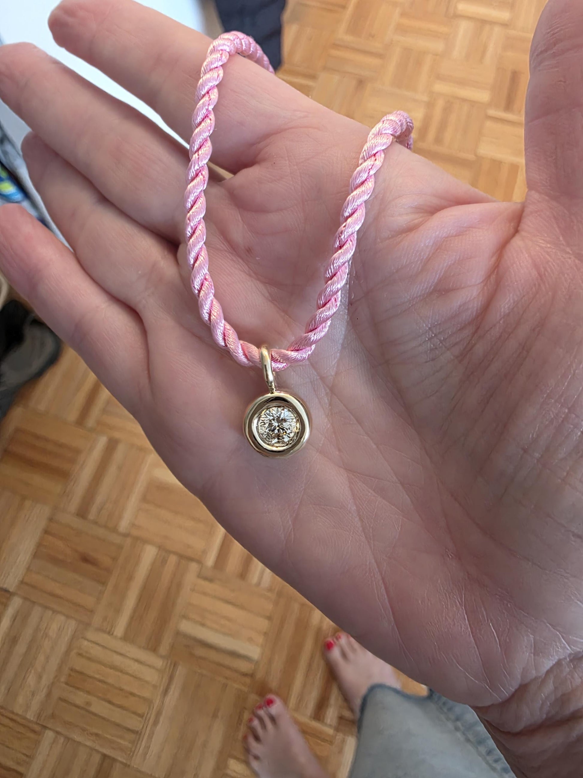 Each pendant is made to order. It can also be made in 18K gold, and with a natural diamond or other gemstone.